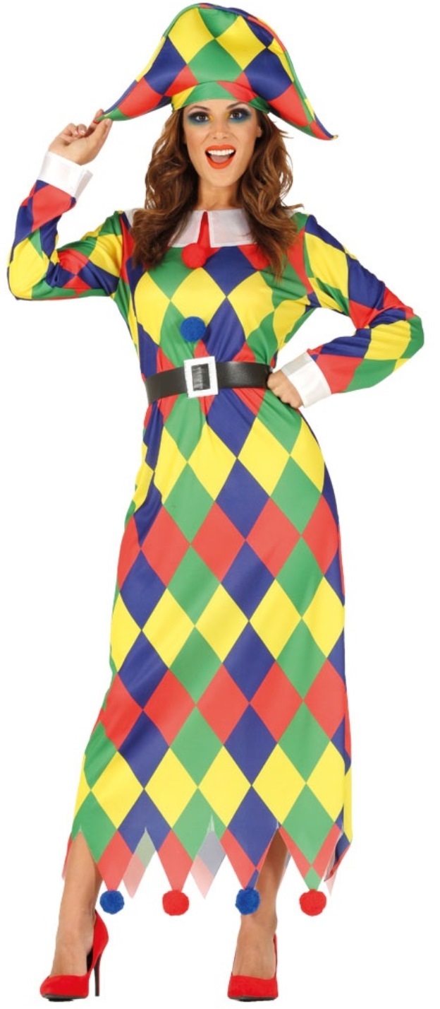 Adult Harlequin Costume Jester Fancy Dress Halloween Clown Outfit