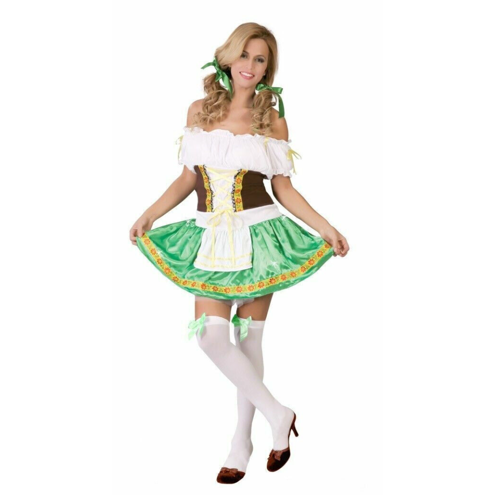 Adult Bavarian Beer Girl Green Brown Oktoberfest German Maid Fancy Dress Costume