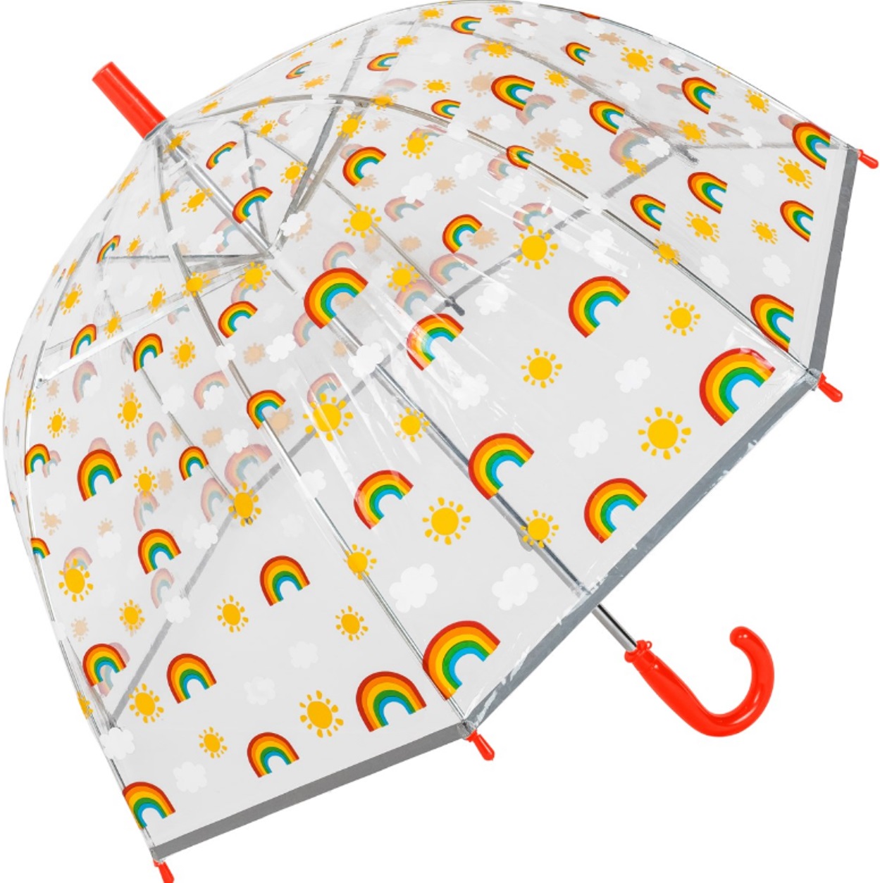 Kids Umbrella Dome Rainbow School Travel Brolly Red Handle