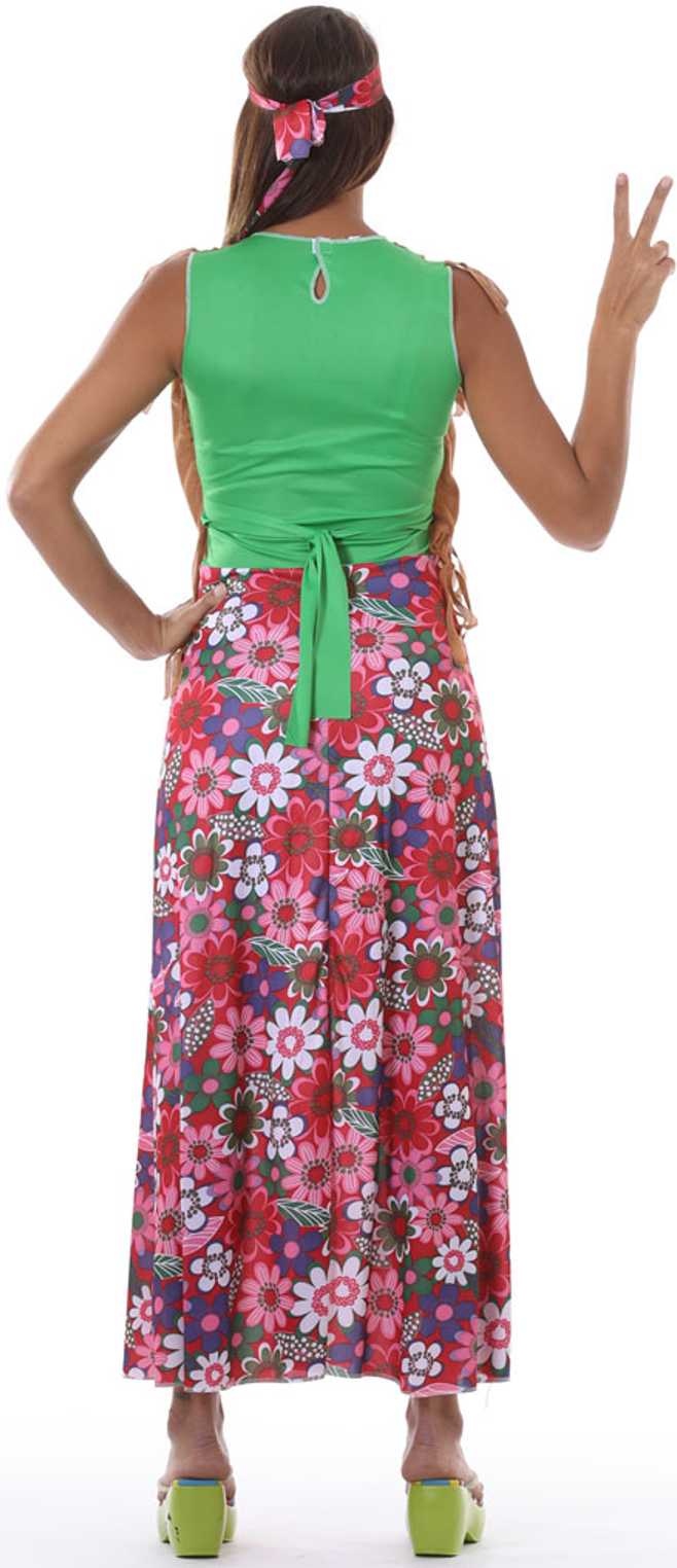 Adult Ladies 60s 70s Hippy Flower Power Costume Hippie Womens Fancy Dress Outfit