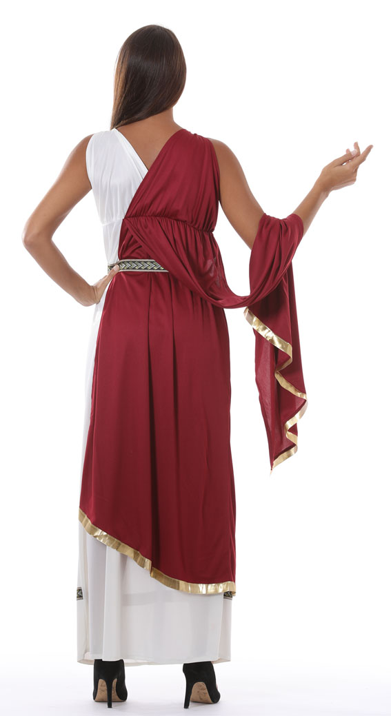 Roman ladies costume consists of a burgundy-white sleeveless toga