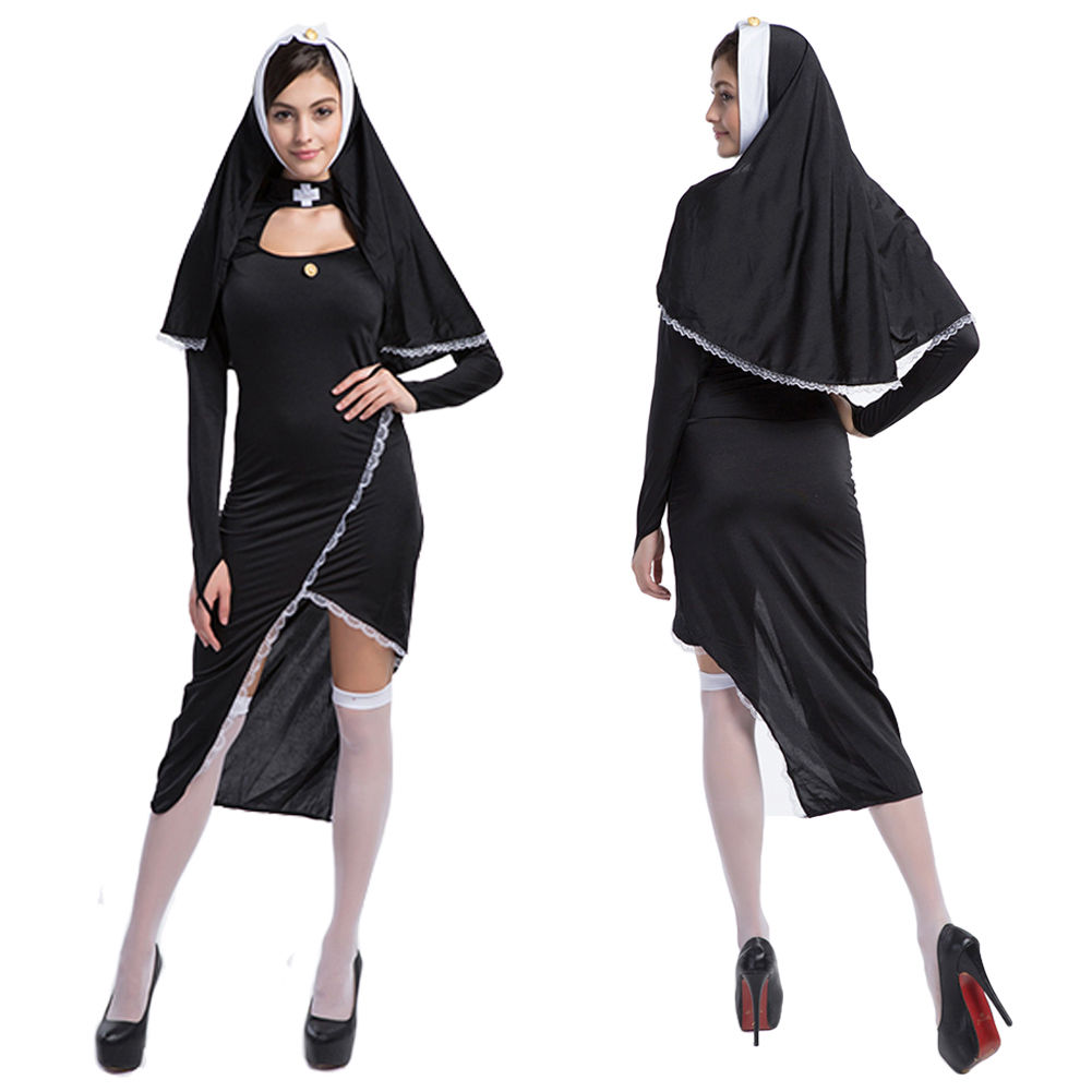 Sexy Nun Costume-Halloween Fancy Dress-Religious Outfit Ladies
